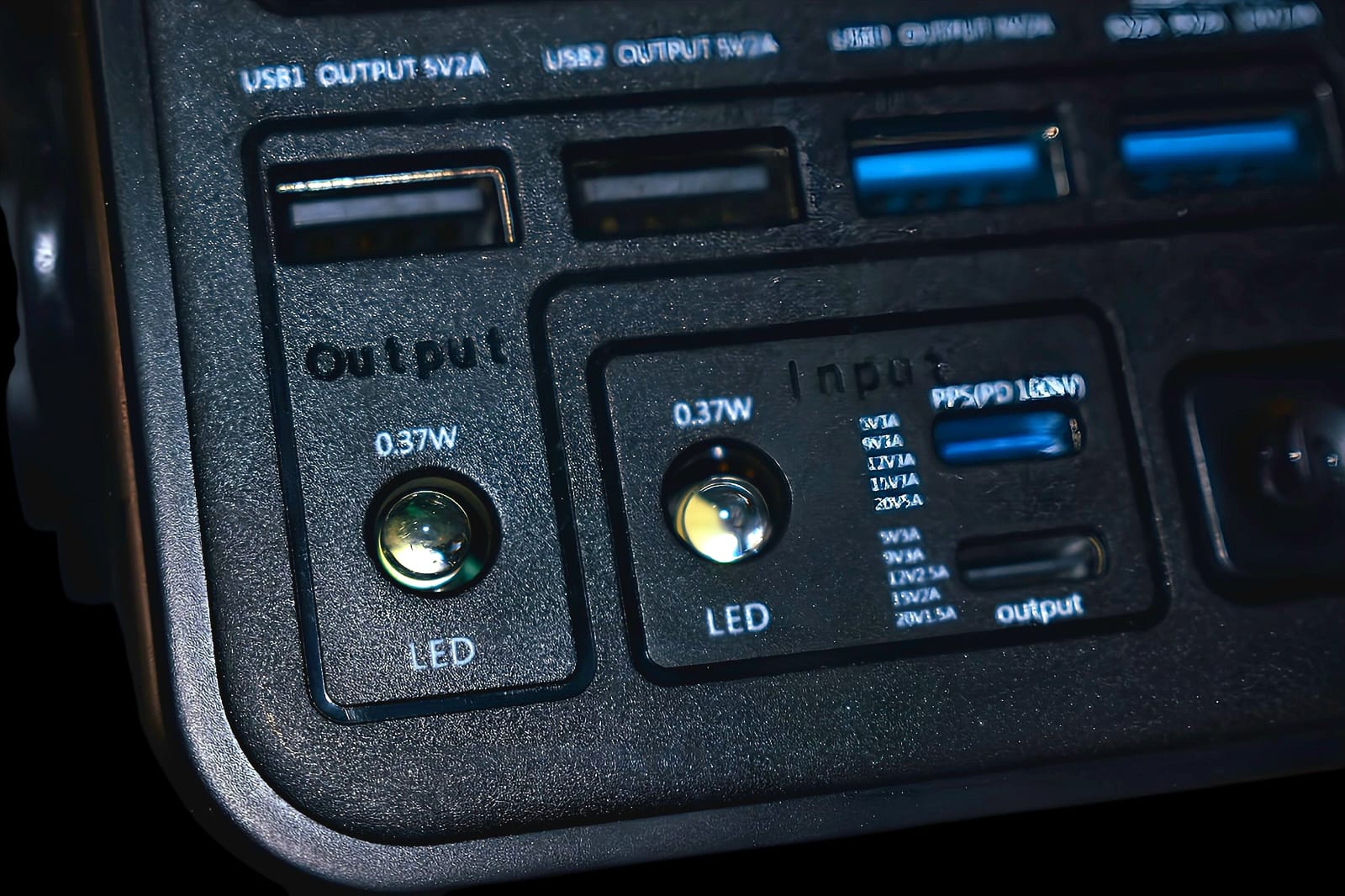 Integrated Lighting: Two built-in lighting lamps (0.37W each) provide illumination, making this power bank ideal for outdoor use.